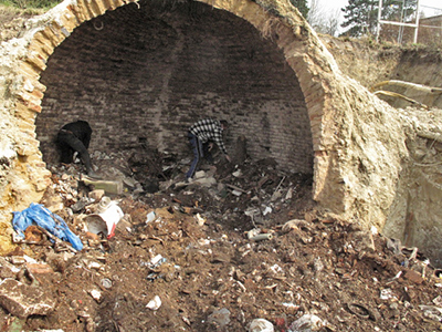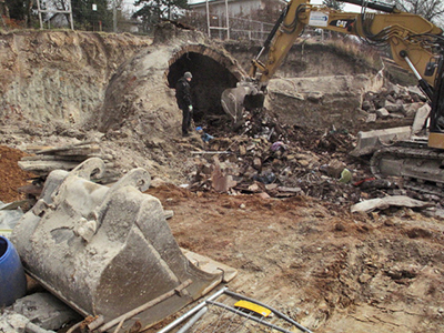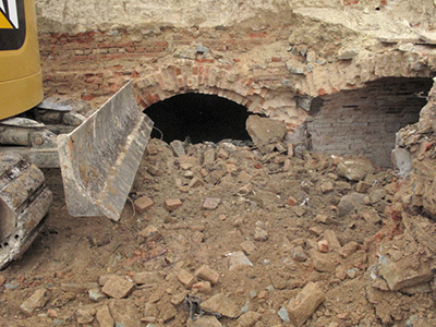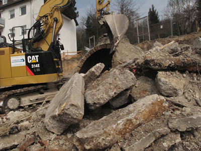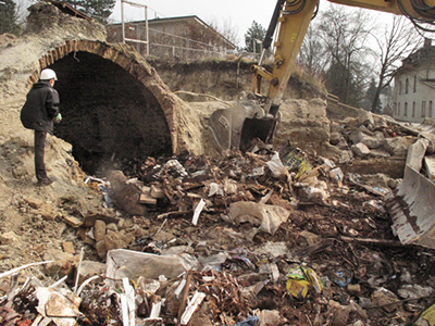Abbrucharbeiten am oberen Geschoss der doppelstöckigen, ehemaligen Eiskeller.