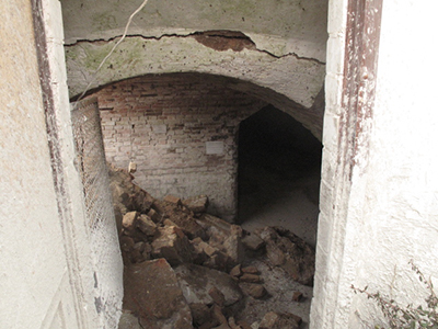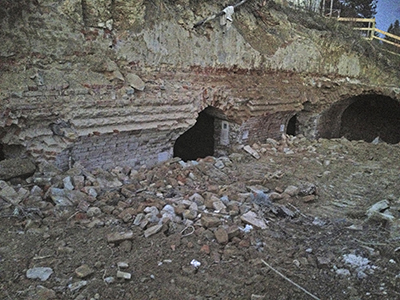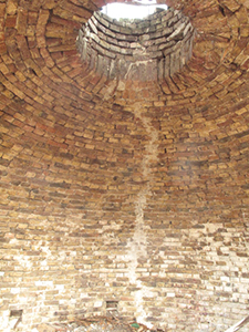 Letzte Momente für die kunstvoll gemauerte Deckenöffnung in einem der Gewölbe.