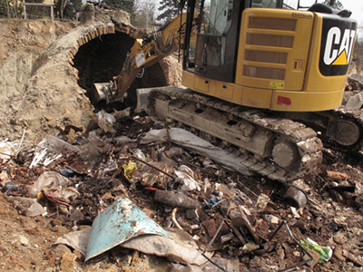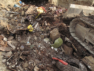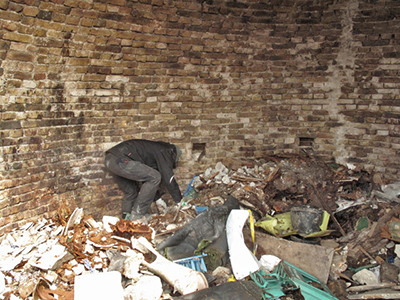 In einer der Gewölbekavernen findet sich tonnenweise Müll und Abfall, der hier vor Jahrzehnten offensichtlich einfach "entsorgt" wurde.