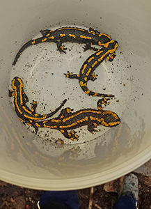 Außer Müll finden die Arbeiter hier auch eine äußerst seltene Spezies: Feuersalamander!