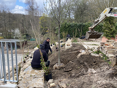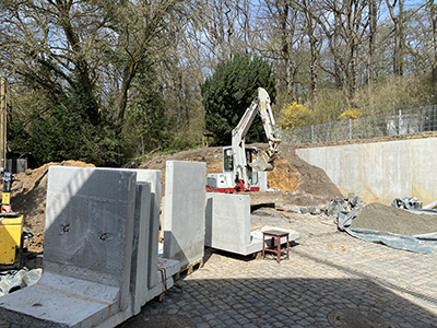 Der Hang zwischen Pferdestall und Haus Esch wird abgetragen um ausreichend Platz für zwei weitere Parkplätze zu schaffen.