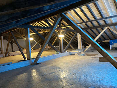 Viel ungenutzter Raum auf dem Dachboden des Kühlschiffs. |