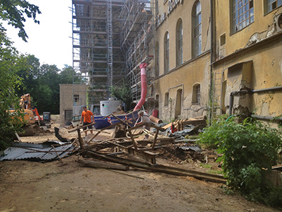 Hier soll das neue Treppenhaus entstehen – doch im Augenblick sieht es eher aus wie nach einem Bombeneinschlag.