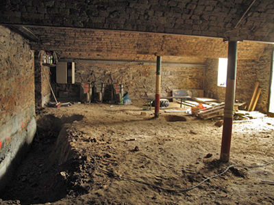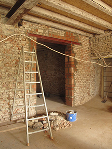 Neuer Türsturz und Verbreiterung der Tür zwischen zukünftigem Malzhaus-Atelier und dem Flur des Ausstellungsbereiches.