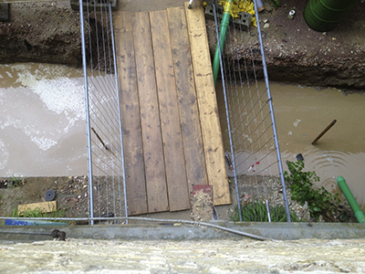 Nach heftigen Regenfällen wird der Versorgungsgraben eher zum echten Burggraben ...