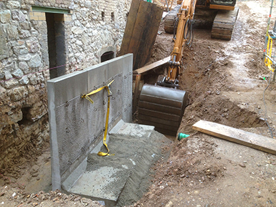 Hier ensteht ein neuer Treppenabgang aus dem Mühlenhof zum Kellergeschoss des Mühlenhauses.