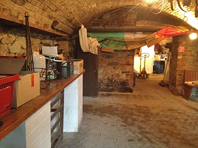 Bevor der Betrieb eventuell gegen Ende des Jahres wieder aufgenommen werden kann, muss das "Vinotto tiefer gelegt werden": Die Deckenhöhe unter dem Tonnengewölbe reicht nicht aus. Der gesamte Boden wird in Kürze abgegraben ...