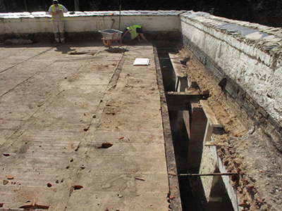 14.03.2017 Terrasse Getreidelager: Öffnung der Terrassendecke. |