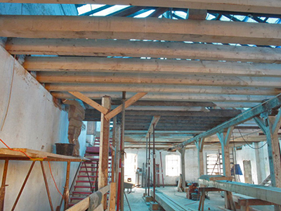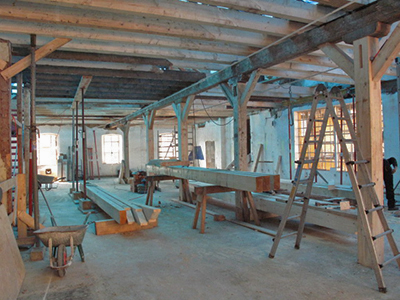 Malzhaus Obergeschoss: Erneuerung der meisten Deckenbalken |