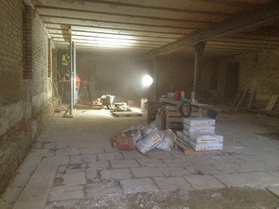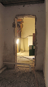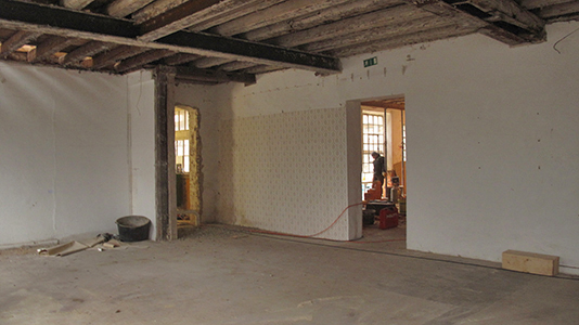 Links sichtbar: Ein neu geschaffener Durchbruch zum Turm, in dem sich später das zentrale Treppenhaus befinden wird.