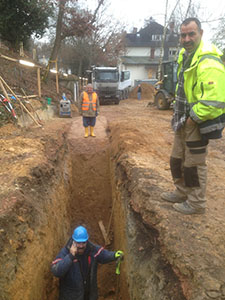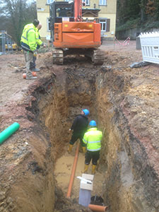 Rechts: Der Hauptstrang der neuen Kanalisation nähert sich dem Haus Esch.