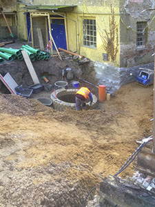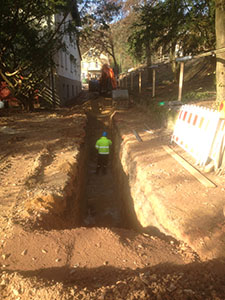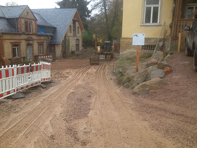 Vortrieb der neuen Kanalisation auf der oberen Zufahrt.