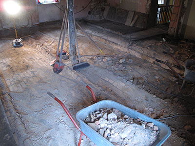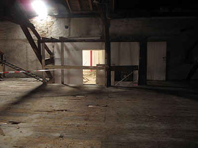 Freilegung der Tonnengewölbedecke im Obergeschoss des Südflügels.