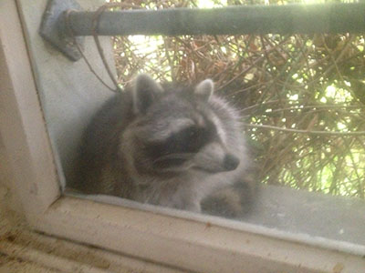 Im Schlaf überrascht: Einer der in der Walkmühle zahlreich vorkommenden Waschbären hat es sich auf einem Fenstersims des Haus Metzler bequem gemacht.