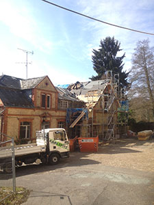 Die Neueindeckung des Pferdestalldaches auf der Ostseite beginnt.