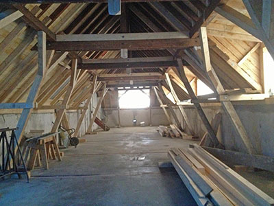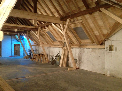 Der instandgesetzte Dachstuhl des Pferdestalles
