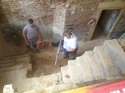 Innenhof vor dem Brauhaus: Letzte Abbrucharbeiten an der ehemaligen Treppe zwischen "Vinotto" und "Vinotto"-Toilette.